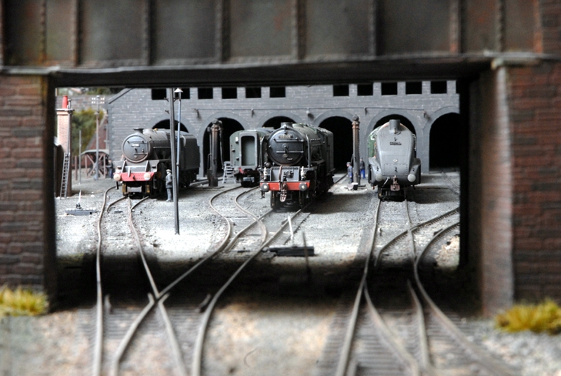 The operation of the layout centres on the loco depot so that, whilst an occasional train passes on the main line at the front, the main activity relates to the servicing of the engines in the depot area. Locos arriving from the main line visit each part of the depot as they are cleaned, turned, coaled and then stationed on shed ready for their next turn of duty.
