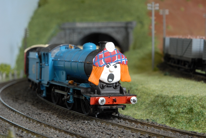 Star attraction is locomotive number 45 with the name “Wee Jimmy”. He dresses the part, with Wee Jimmy orange wig and tartan bonnet. He lives with his friends, some of whom are more famous than himself, in the roundhouse at Auchenshuggle and is regularly called upon to haul the trains from the main line station up the branchline to the quaint little station at Jimmy’s End. There his driver and mate enjoy a cuppa in the station café. Some of Wee Jimmy’s friends are smaller and less glamorous. They are put to use in the quarry, on local goods trains and in the beautifully crafted timber yard.